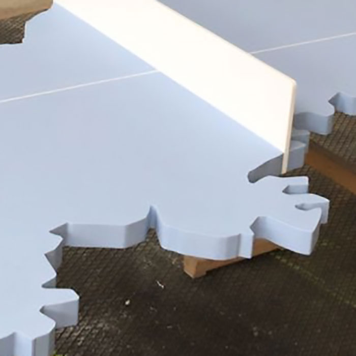 Für ihr Projekt „Map of Korea“ fertigte die Künstlerin eine Tischtennisplatte in der Form von Nord- und Südkorea an, die an ihrem Aufstellungsort geografisch korrekt ausgerichtet wird.